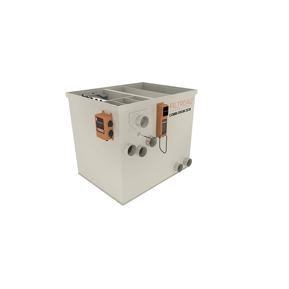 Promote the clarity and quality of your pond water with the COMBI DRUM 20/25 from Filtreau Excellent. Ideal for both mechanical and biological filtration, this filter system is guaranteed to contribute to an optimal habitat for all your flora and fauna in your pond.