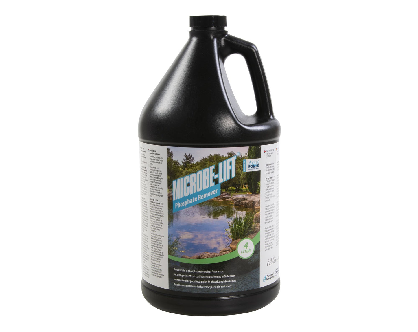 The ultimate remedy in phosphate removal for fresh water. Use Microbe-Lift Phosphate Remover for starting up a new pond. this guarantees low phosphate concentrations. To clear the pond from phosphate successfully, it is necessary to use Phosphate Remover regularly in new or existing ‚‚¦mature‚‚½ ponds. MICROBEL-LIFT POND PHOSPHATE REMOVER is a polymeric blend with outstanding qualities, including the ability to tie-up large quantities of phosphate without negatively influencing the pond water in any way. Phosphate- caused by the decomposition of organic substances such as food surpluses, dead plant matter, and excretion. Although phosphate is a vital part, it is only damaging in low concentrations. A phosphate concentration increase could lead to water quality problems. To solve problems caused by phosphate, it is recommended to keep the phosphate concentration in fresh water below 0,3 mg/ltr.